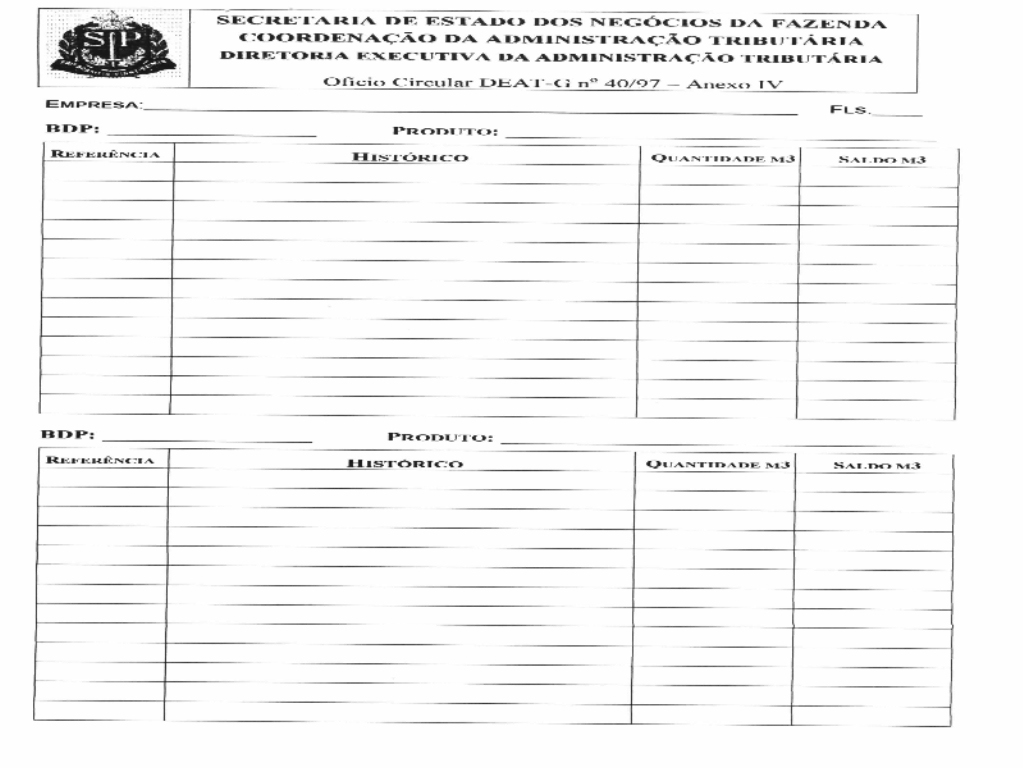 15. No anexo IV serão anotadas a movimentação de cada produto em cada BPD, devendo iniciar-se em cada mês com as cotas definidas pelo Departamento Nacional de Combustíveis - DNC, ajustadas pelas cessões feitas ou recebidas e cotejadas com o bombeamento efetivo feito pela PETROBRÁS e pelas saídas declaradas pelo contribuinte.